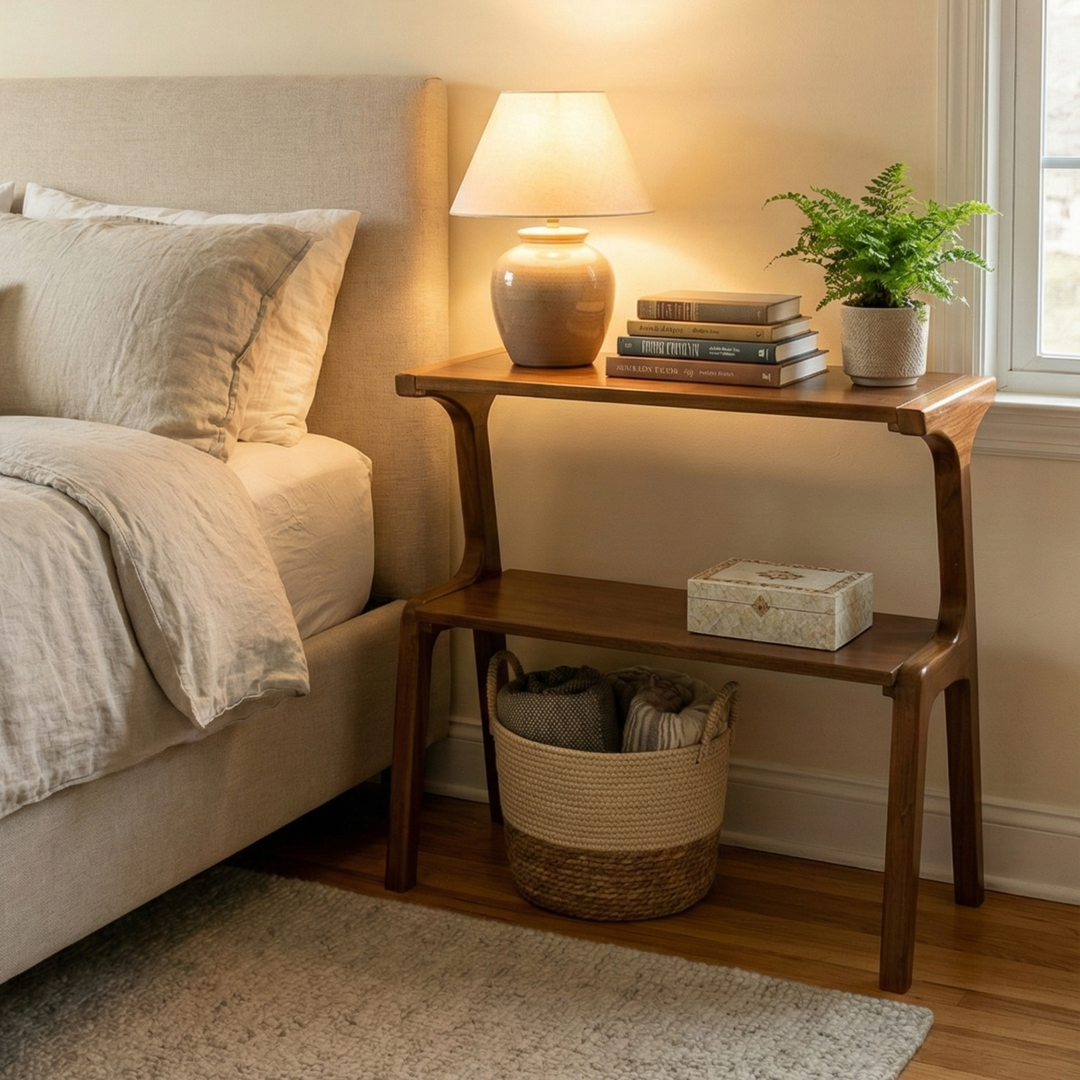 Rs. 17,472.00Rs. 23,675.00Bring quiet elegance and everyday functionality to your bedroom with the Aroha Bedside Table, crafted from solid teak wood and designed for modern Indian homes. With its softly rounded edges, balanced proportions, and warm teak...