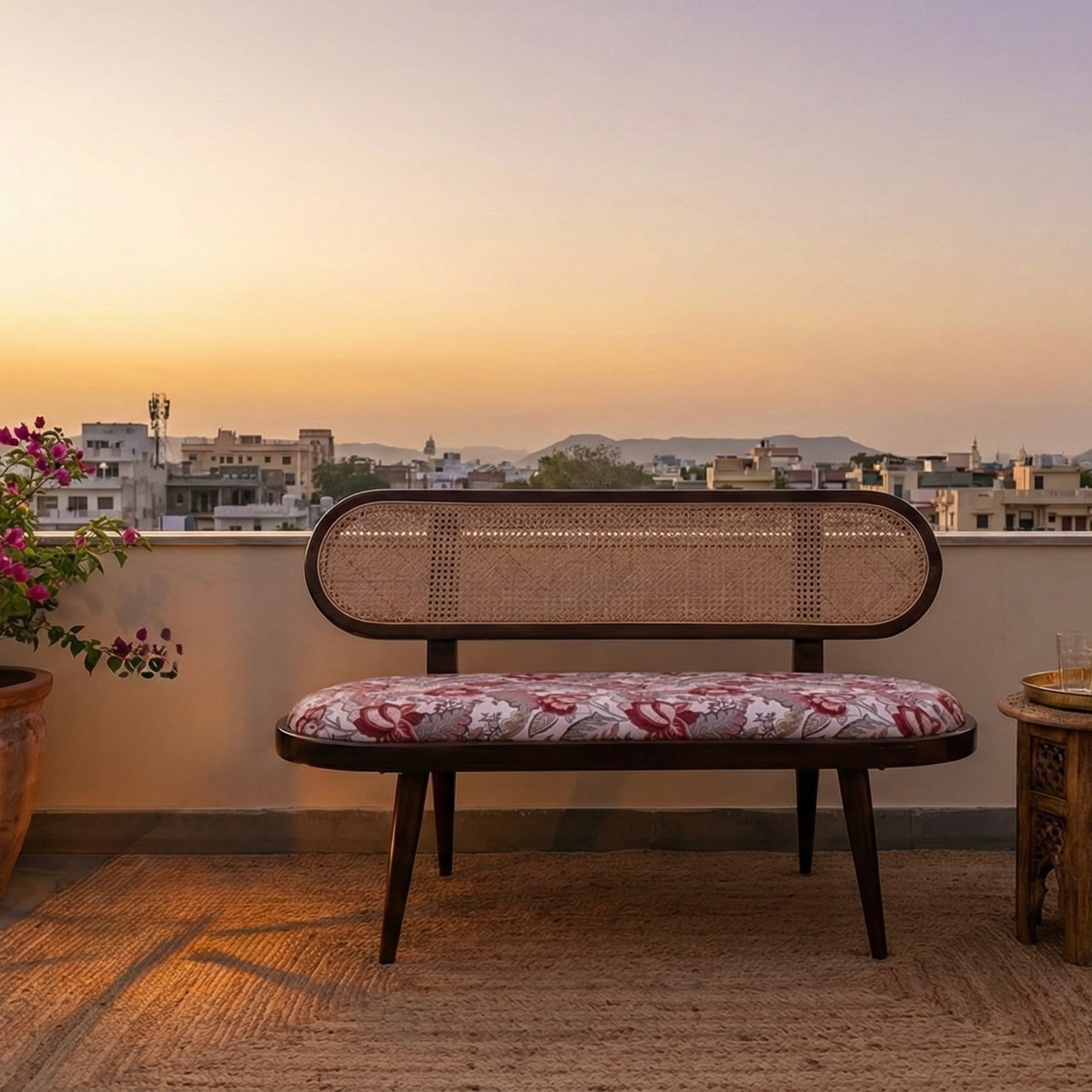 Bring warmth, comfort, and natural elegance into your home with the Saumya Lounge Bench — a refined blend of solid teak wood, handwoven natural rattan cane, and premium upholstery. Designed to elevate living rooms, bedrooms, foyers, and studio spaces, Saumya offers both visual charm and everyday usability.