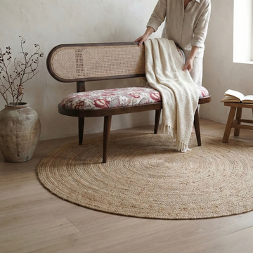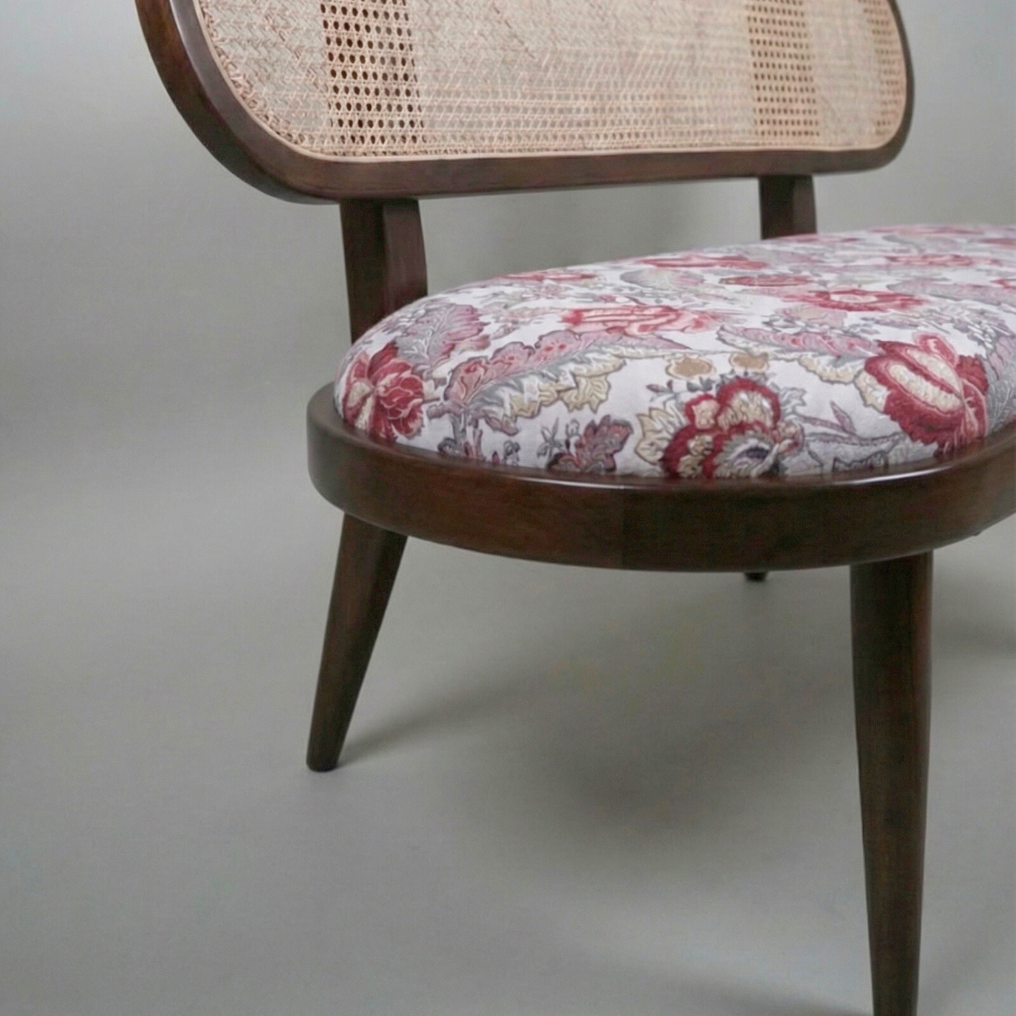Handcrafted from seasoned teak wood, known for its durability and timeless grain, the frame carries a smooth, organic silhouette. The cane panels introduce lightness and texture, while the cushioned seat provides exceptional comfort with high-quality foam and fabric.